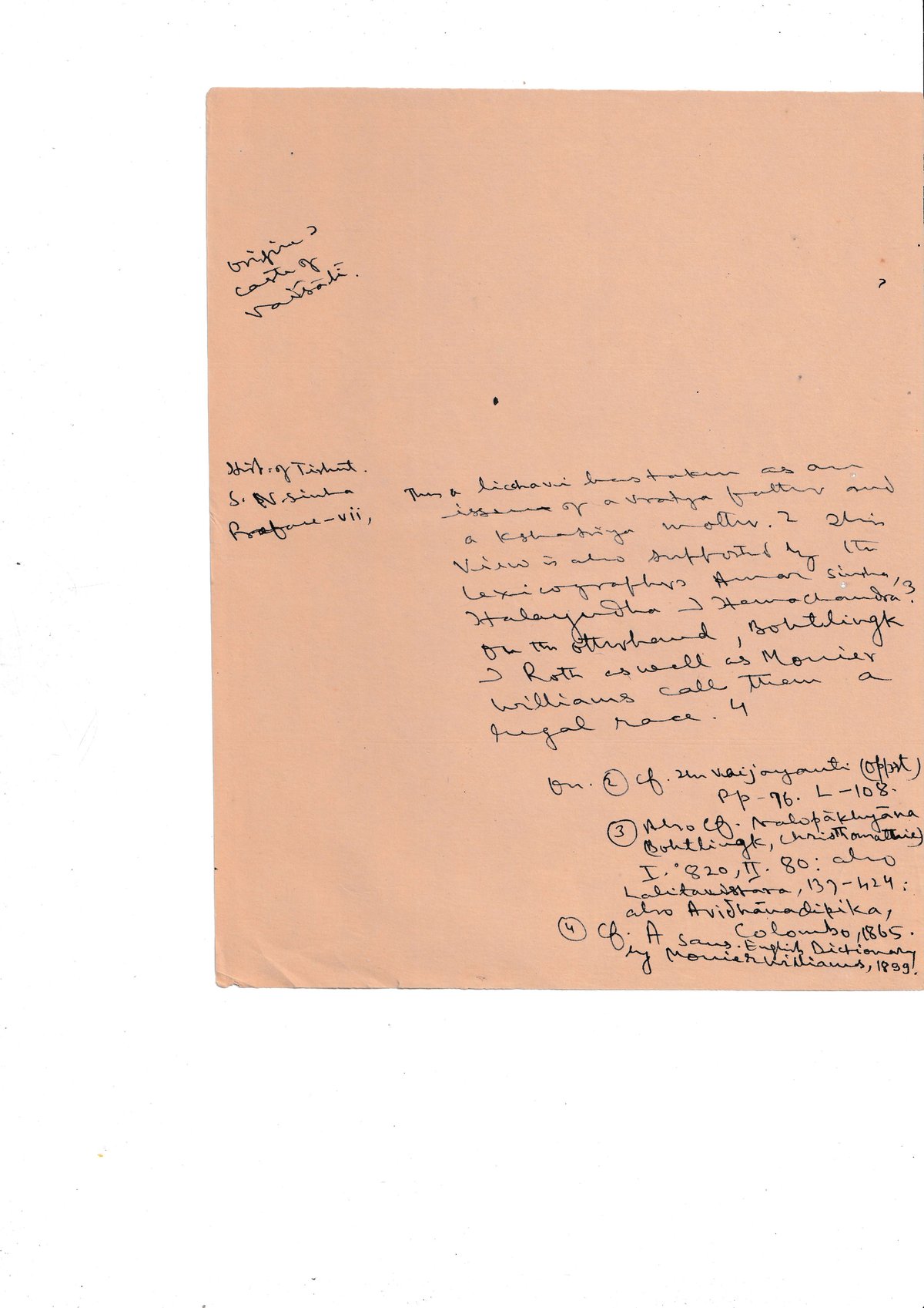 Hist. of Tibet. S. Nosinda Professor-VII, This a Lichavi has taken as an issue of a vratya father and a kshatriya mother. 2 This view is also supported by the lexicographers Amar sinha, Halayudha Hemachandra? On the otherhand, Bobtelingk & Roth as well as Monier Williams call them a rugal race. 4