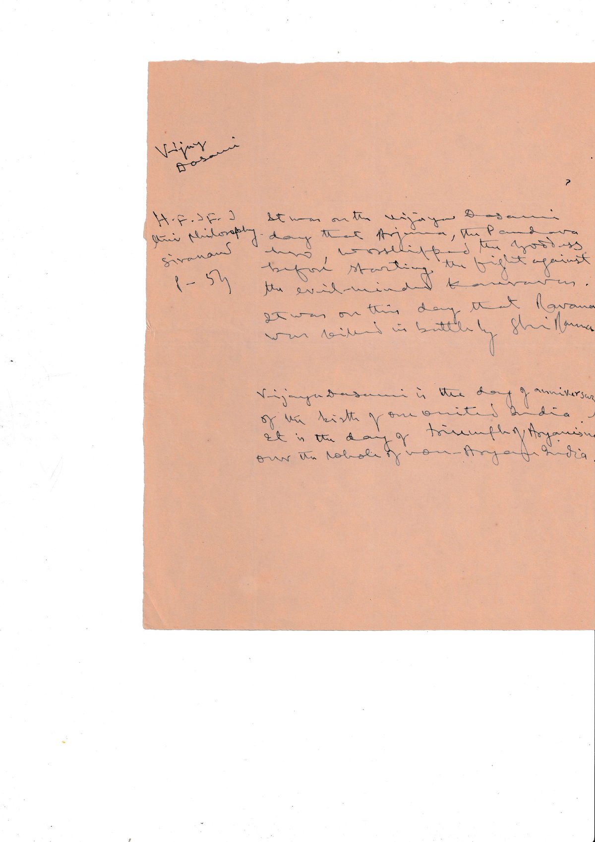 H.F.J.F.J It was on the Vijayadasami Day that Rama won his philosophy day that Arjuna, the Pandava siranaus hero worked for the fighting(?) 1-54 the enlightened tournament(?).
