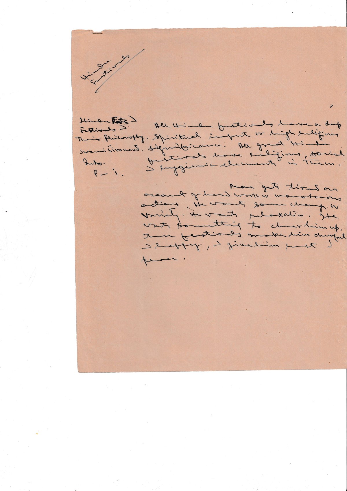 Man gets tired or account of hard work & monotonous actions. He wants some change & variety. He wants relaxation. He wants something to cheer him up. These festivities make him cheerful & happy. I give him rest & peace.