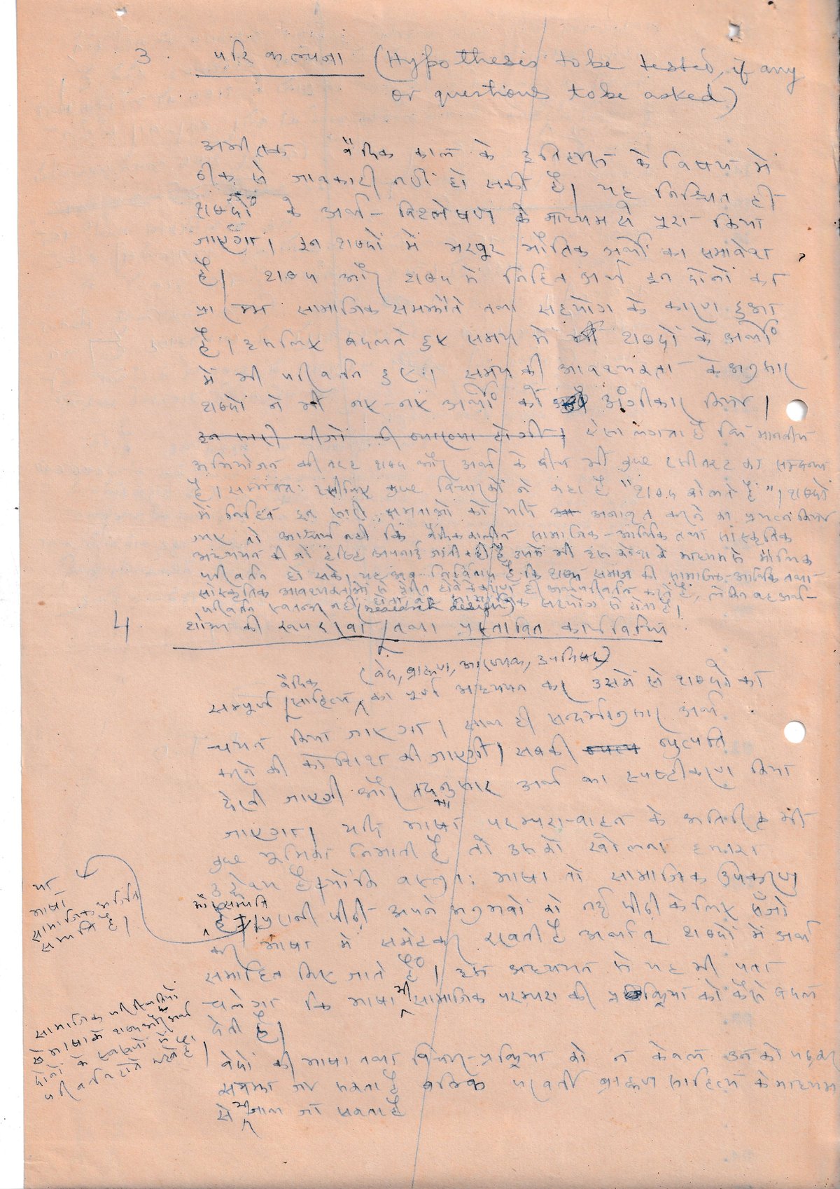 3. और प्रश्न (Hypothesis to be tested, if any or questions to be asked)