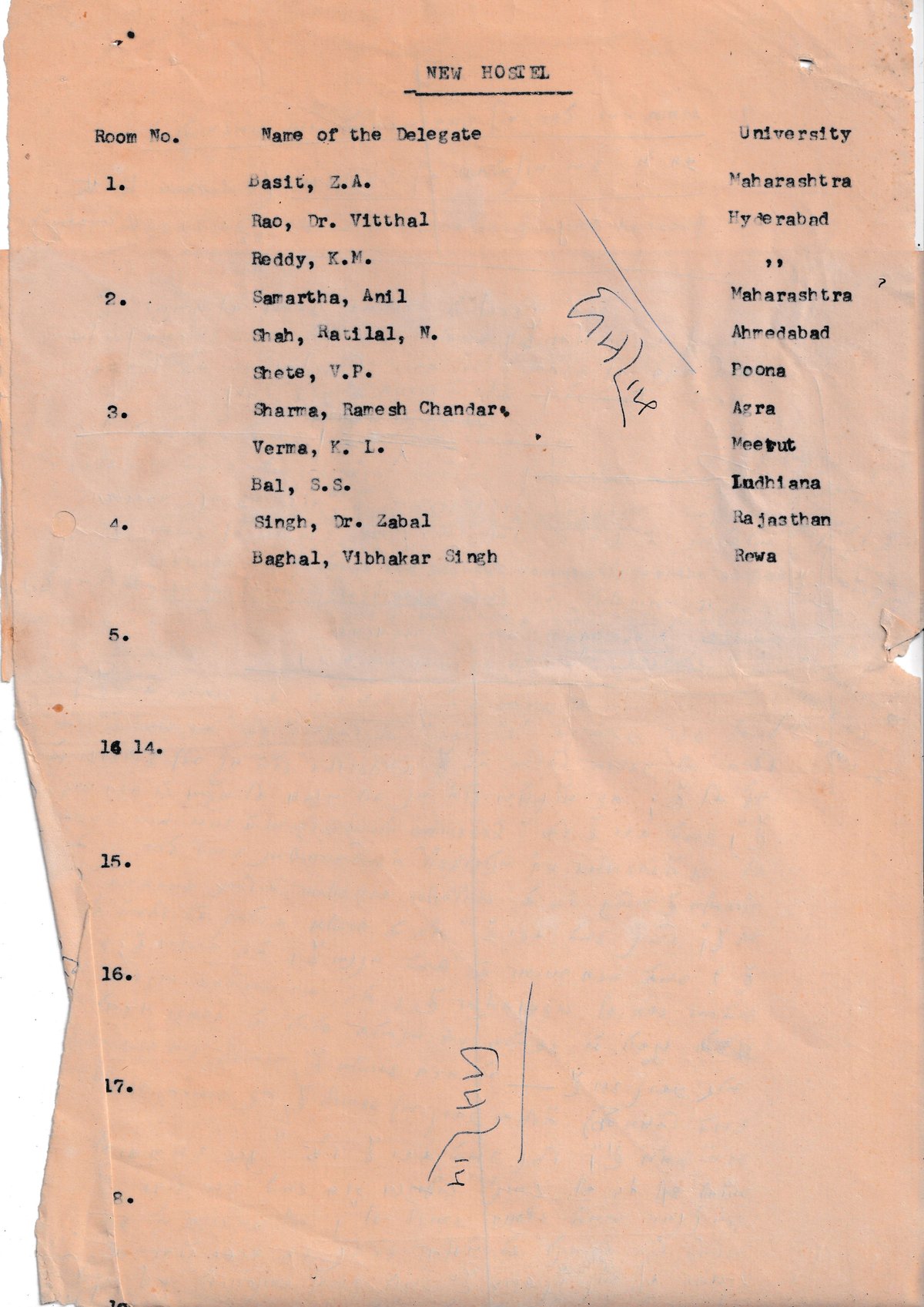 Room No. Name of the Delegate University