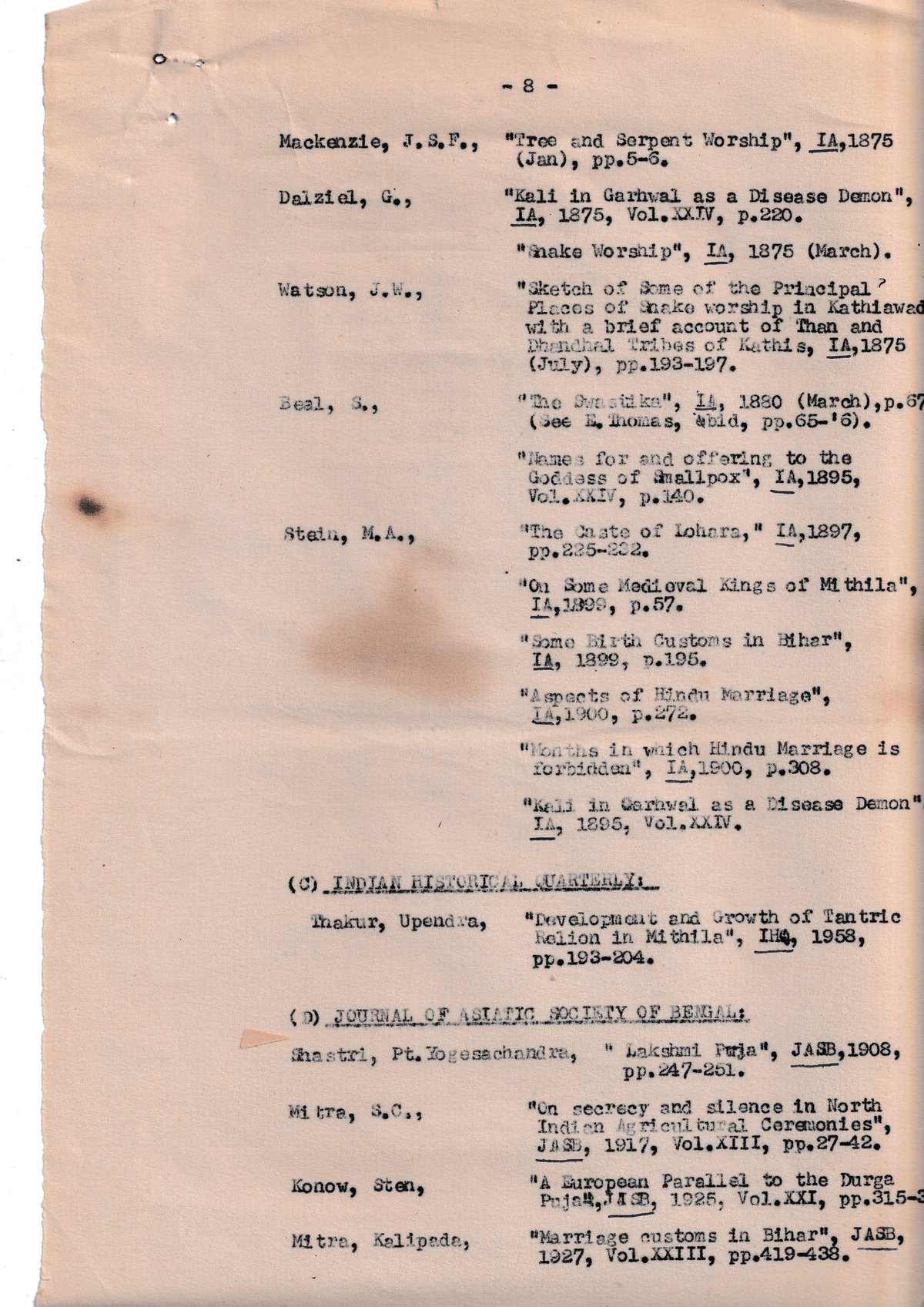 Thakur, Upendra, "Development and Growth of Tantric Relion in Mithila", IHQ, 1958, pp.193-204.